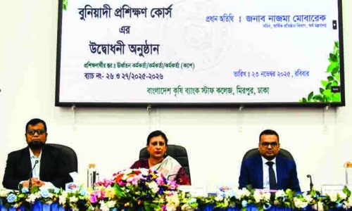 বাংলাদেশ কৃষি ব্যাংক স্টাফ কলেজ কর্তৃক আয়োজিত ২০২৫-২৬ অর্থবছরের ব্যাচ নম্বর ২৬-২৭ এর ঊর্ধ্বতন কর্মকর্তা/কর্মকর্তা/কর্মকর্তা(ক্যাশ)গণের বুনিয়াদী প্রশিক্ষণ কোর্সের উদ্বোধনী অনুষ্ঠান ২৩ নভেম্বর ২০২৫ তারিখে স্টাফ কলেজ মিলনায়তনে অনুষ্ঠিত হয়। অনুষ্ঠানে…